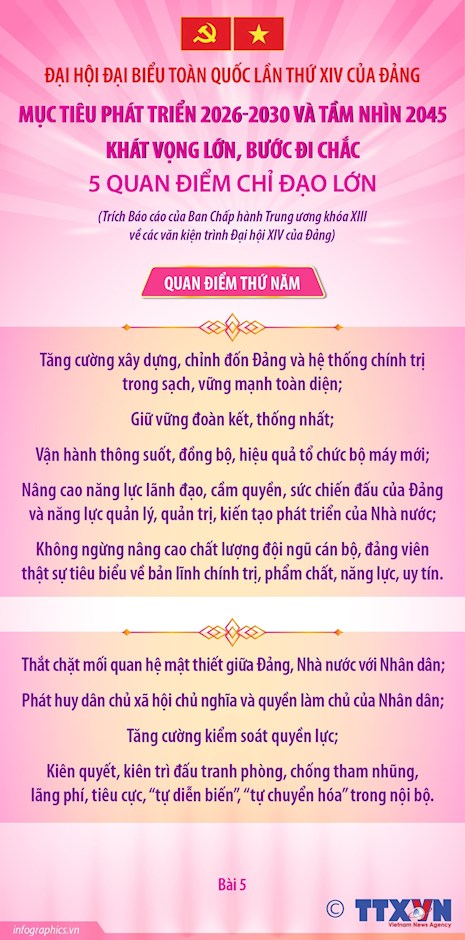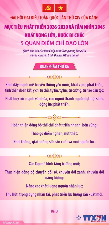 Đại hội XIV của Đảng: 5 quan điểm chỉ đạo lớn để thực hiện mục tiêu phát triển 2026-2030 và tầm nhìn 2045